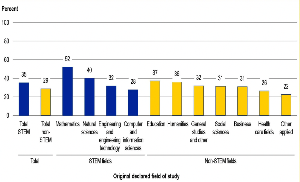 美国教育部此前数据就显示,大概三分之一的学生在三年内至少换过一次专业,数学和自然科学专业的学生转专业的比例很高。
