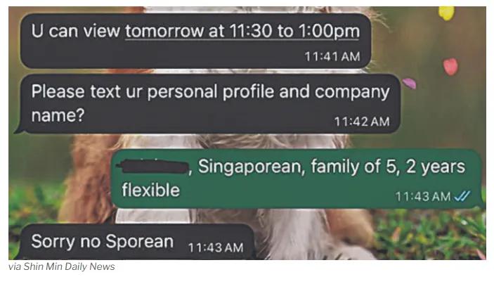 一句话——“抱歉,不要新加坡人。”