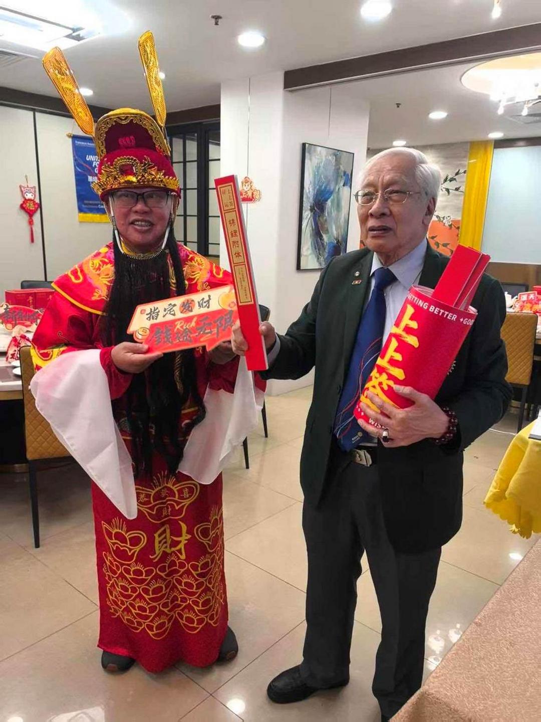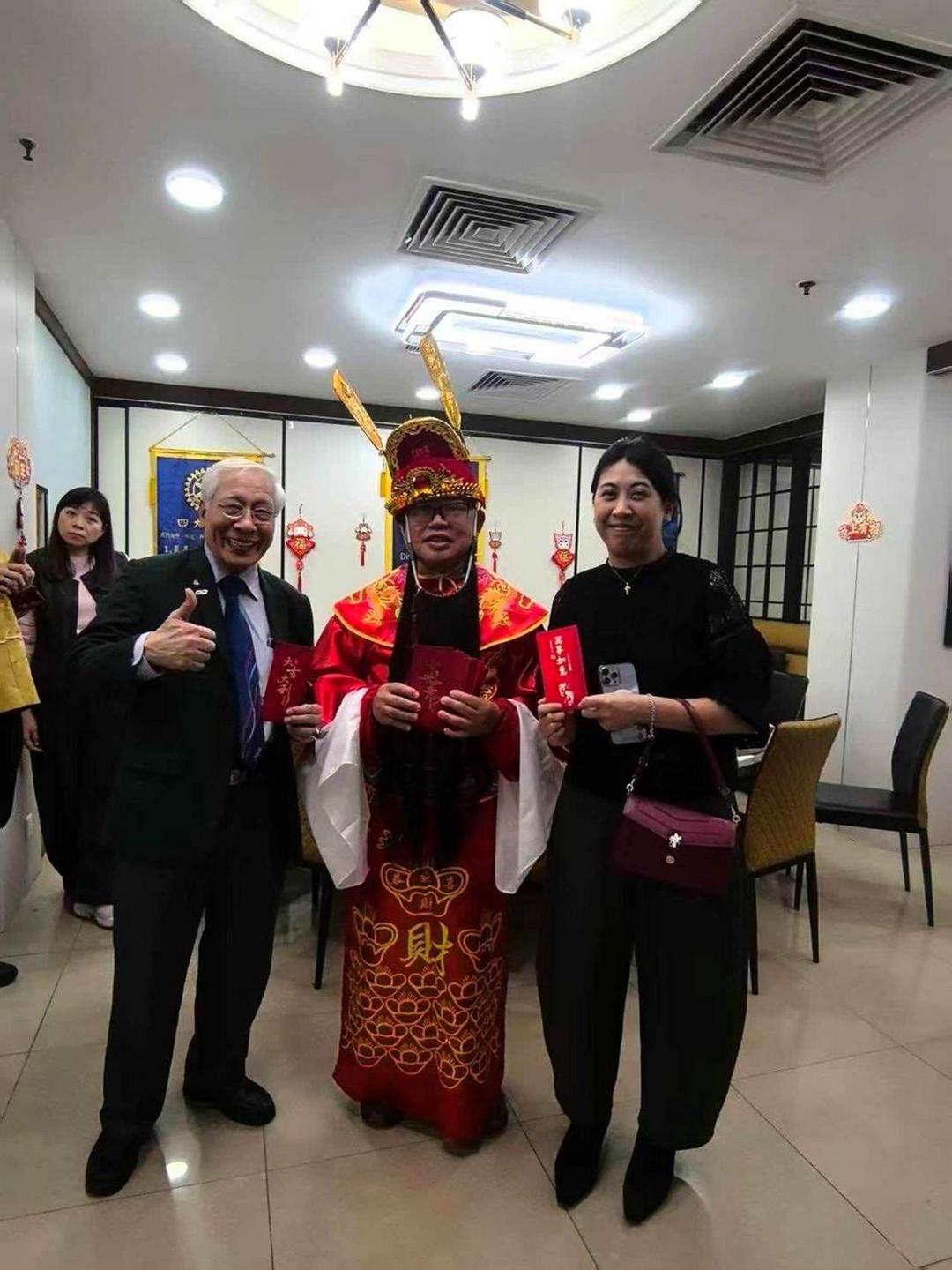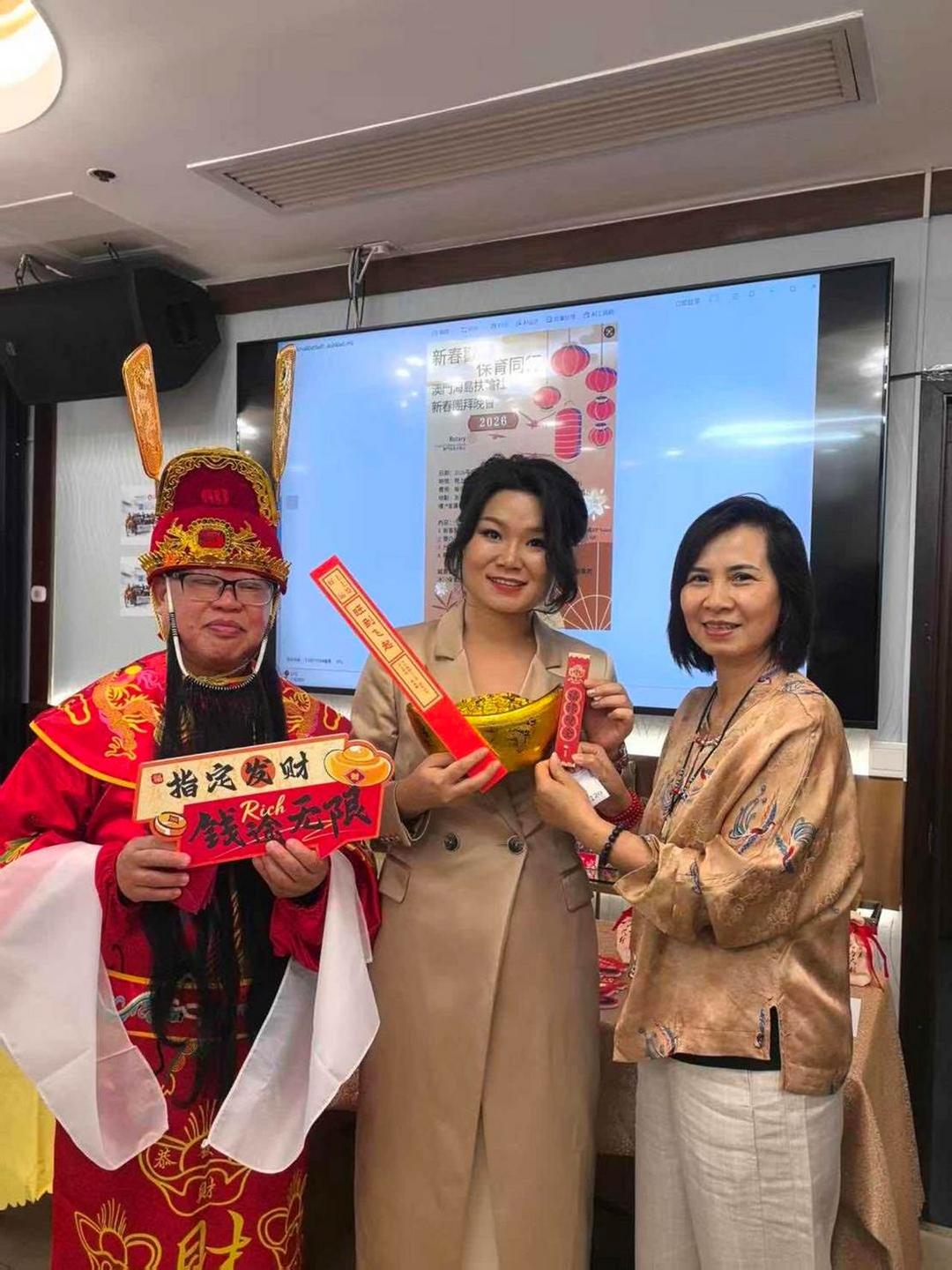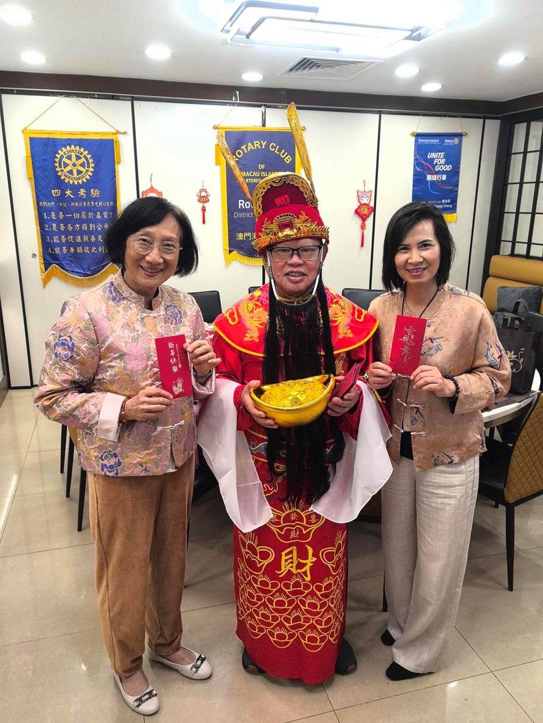 嘉賓雲集 共賀新禧 晚會於七時啟幕,出席嘉賓包括:國際扶輪3450地區地域一助理區總監鄧偉邦、地區總監提名指定人王傑生、扶輪保育地球委員會主席李美慈、助理副總監鄺杰華與鍾裕文,以及澳門扶輪社社長易啟楠、濠江扶輪社社長周凱嬣、松山扶輪社社長譚杰成、澳門友誼扶輪社社長黃麗敏及候任社長黎司鉻、澳門西望洋扶輪社社長劉百球等,與一眾社友及家屬歡聚迎春。
